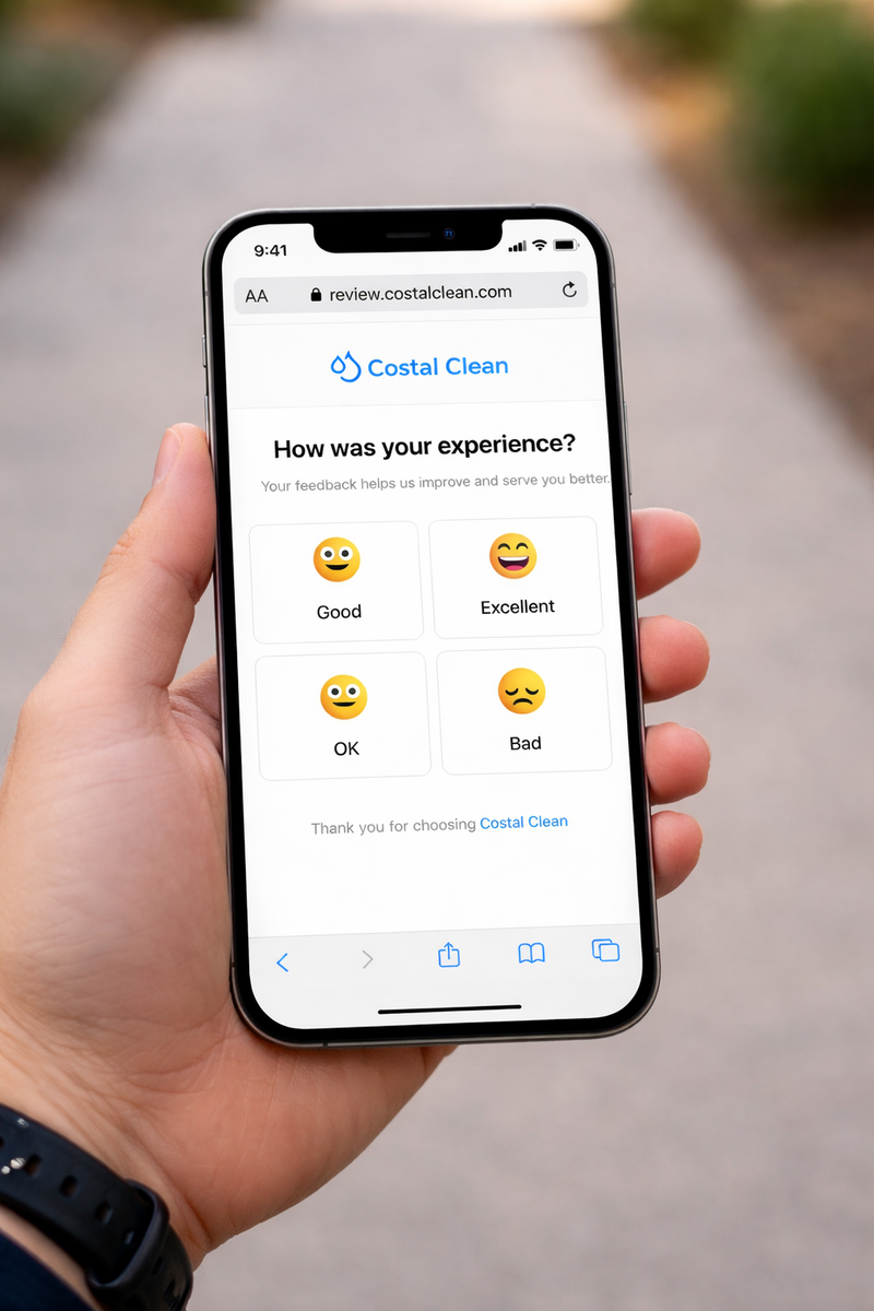 Satisfied customers are guided directly to leave a public Google review instantly.
